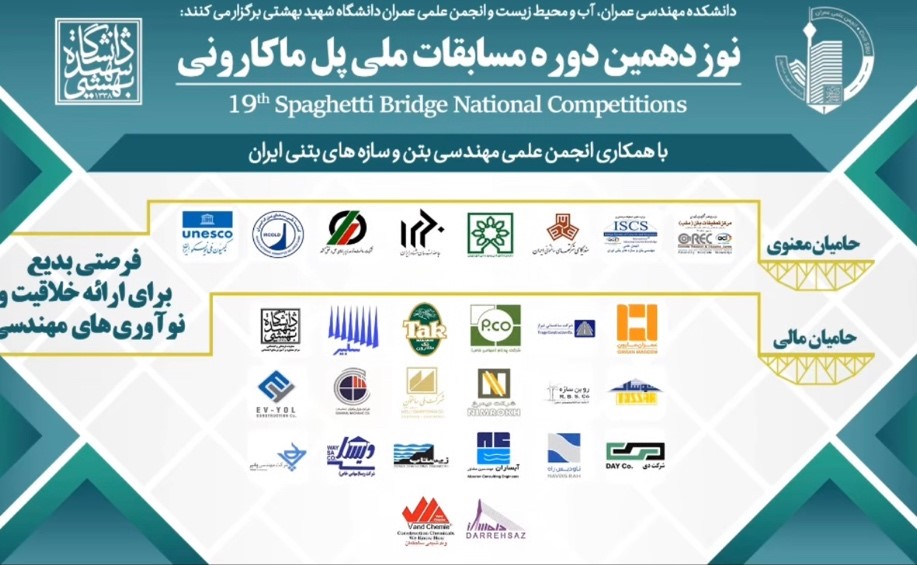 نوزدهمین دوره «مسابقات ملی پل ماکارونی» ۱۳ و ۱۴ مهـرمـاه سال ۱۴۰۳ در پردیس فنی و مهندسی شهید عبـاسپـور دانشگاه شهید بهشتی برگزارشد.